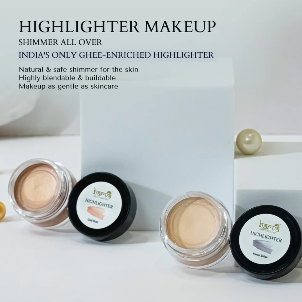A unique blend of Cow Ghee, Kokum Butter & Vitamin E, Barva Highlighter Makeup is available in 3 shimmery shades to add a touch of festive glam to your face makeup!