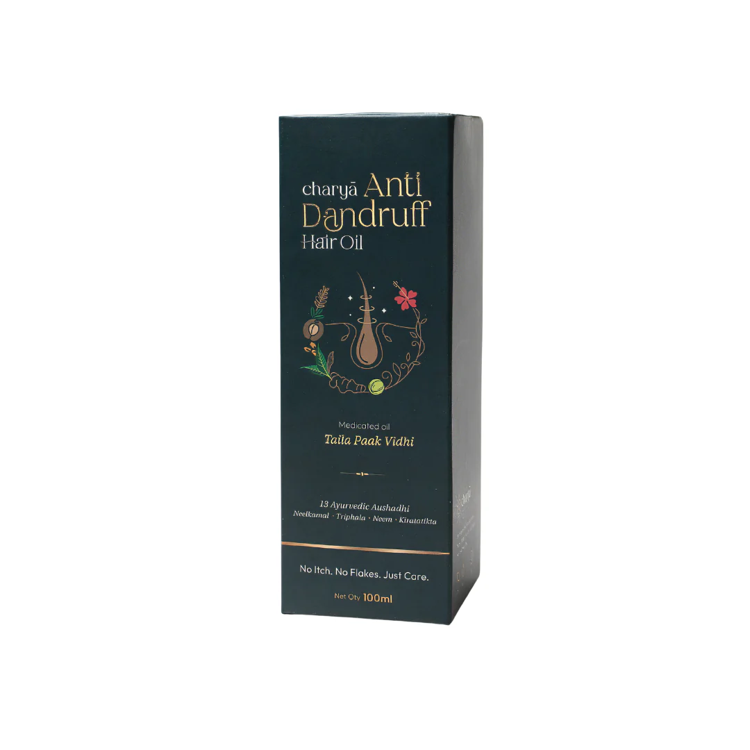 Each herb is chosen for its scalp-purifying, anti-fungal, cooling and hair-strengthening properties. Triphala, Haridra, Daruharidra and Neem help control the root cause of dandruff by reducing fungal activity and scalp inflammation.