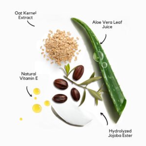 Aloe Vera Extracts. Oat Extracts. Hydrolised Wheat Protien. Natural Vitamin E. Jojoba Ester