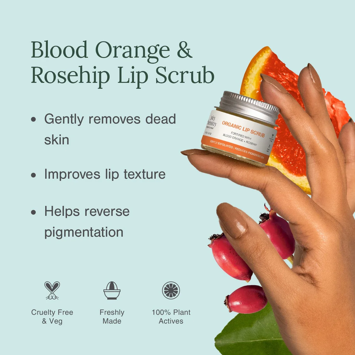 This organic lip scrub gently buffs away dead skin and leaves your lips nourished. It also helps reduce pigmentation, thanks to its high vitamin C content.